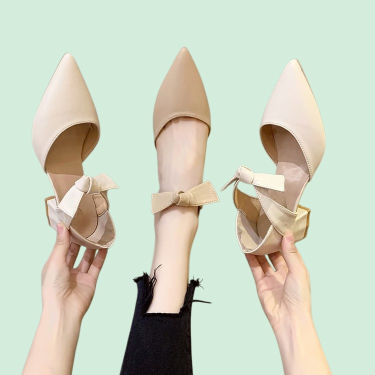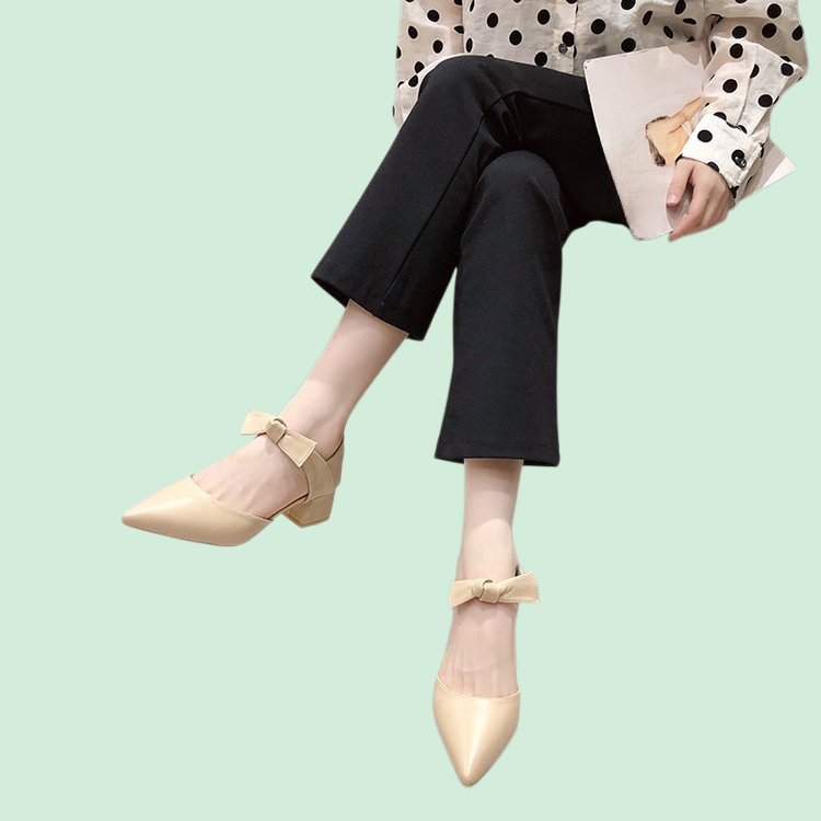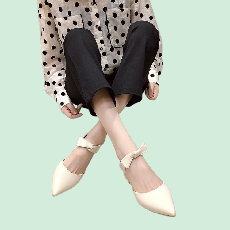 세련된 뾰족 앞코 디자인, 빈틈이 있는 리본 장식, 편안한 착화감, 다양한 스타일링 가능 플랫 슈즈