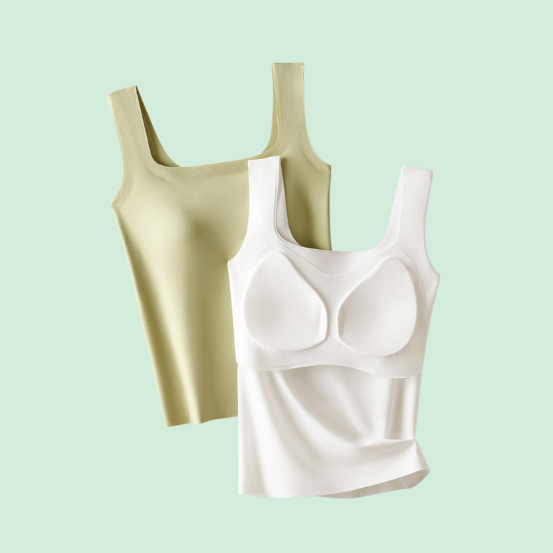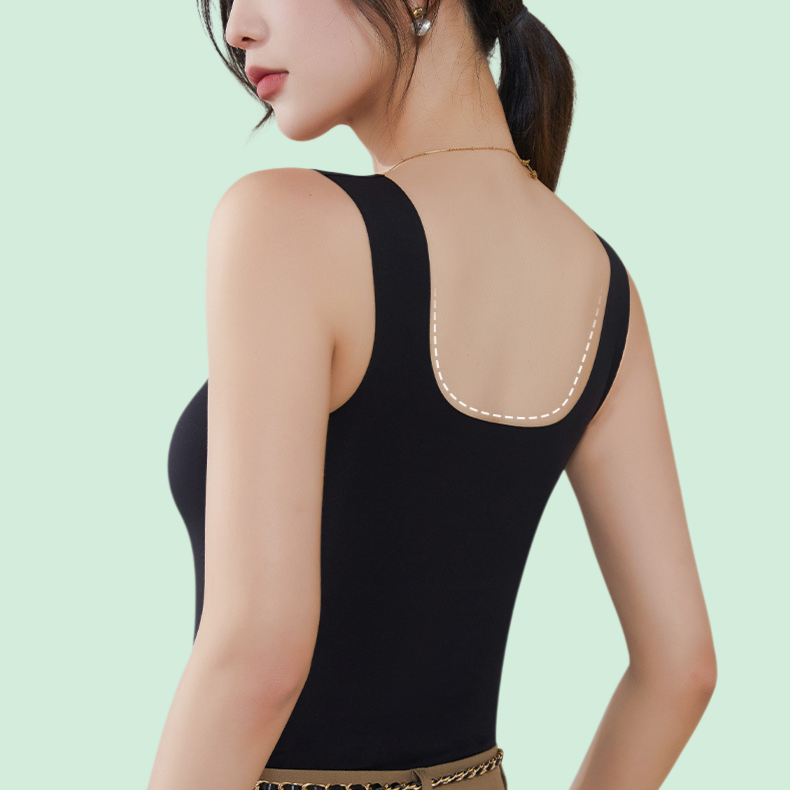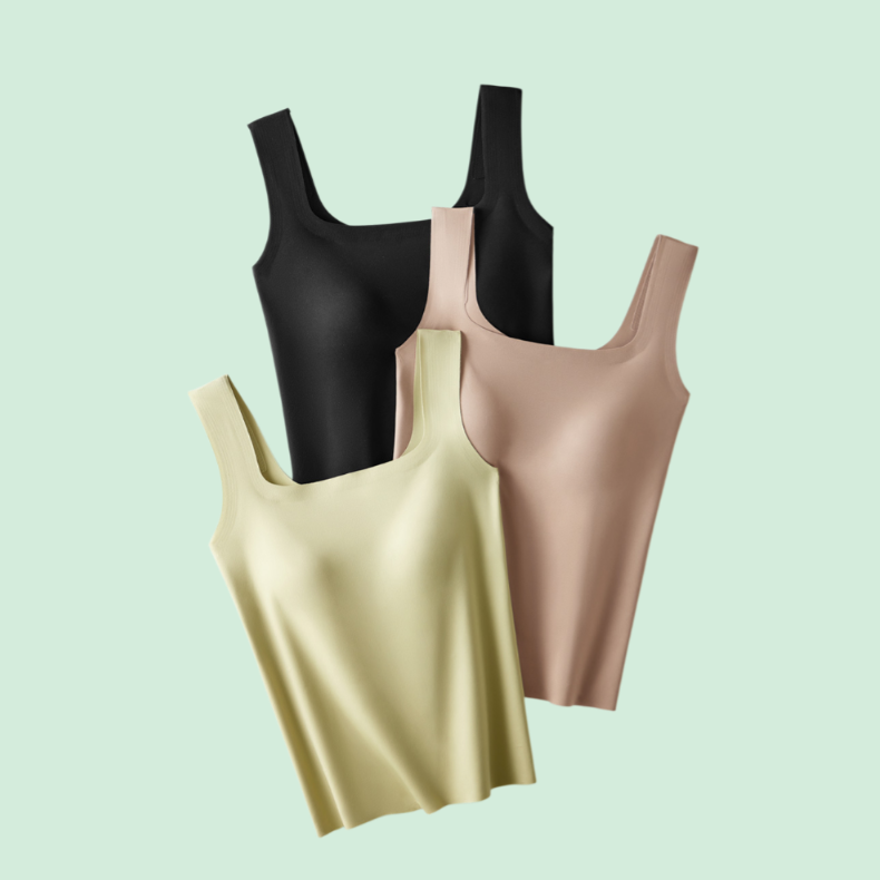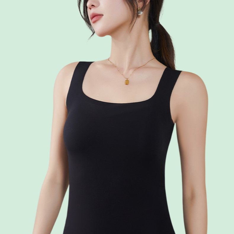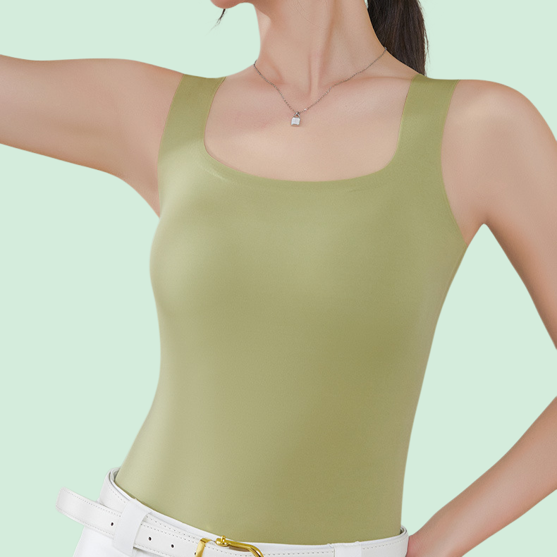 아이스 실크 무봉제 패드 내장 스퀘어넥 민소매 상의